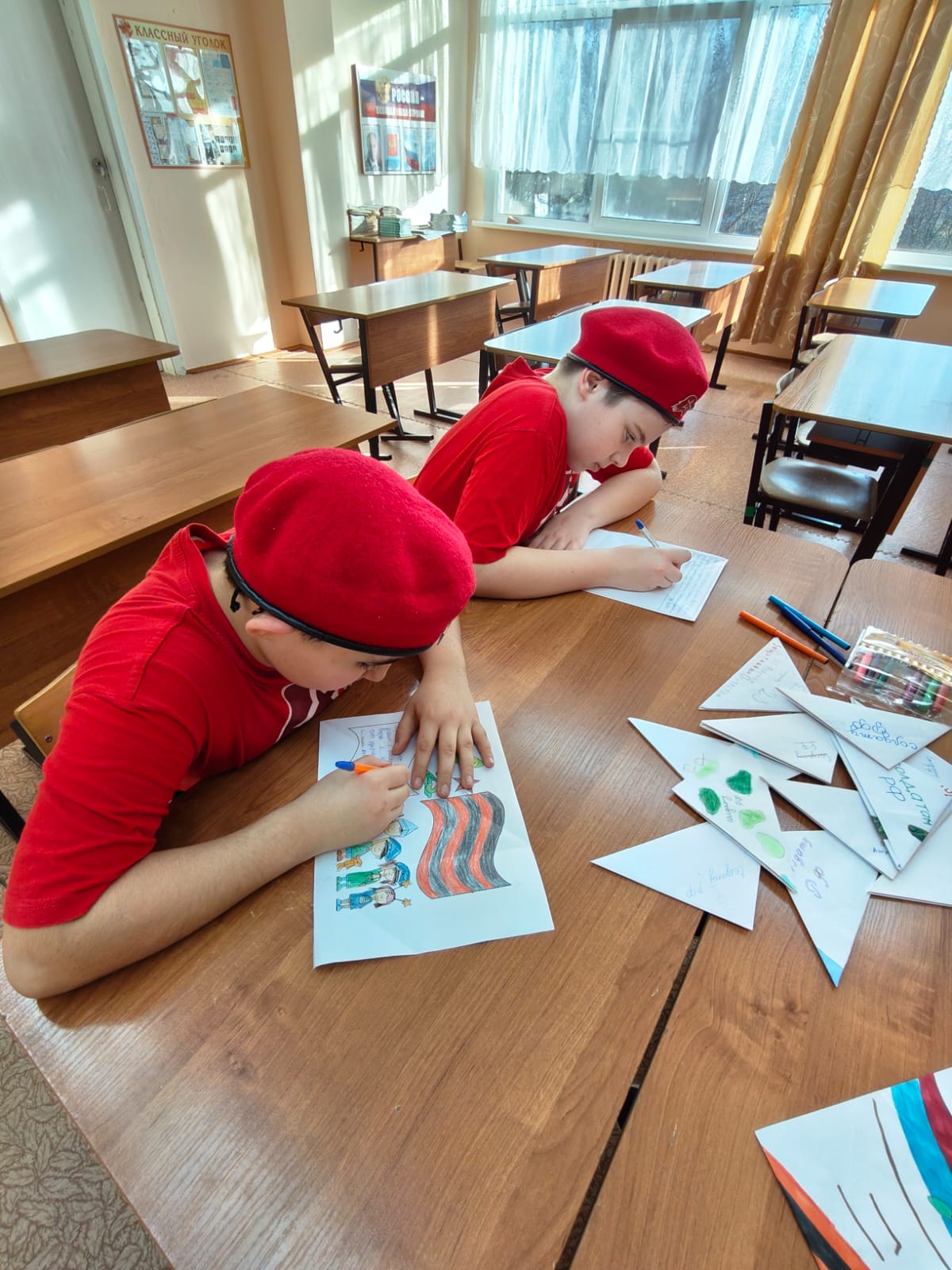 Ребята написали добрые послания участникам Специальной военной операции и нарисовали открытки, в которых поздравили наших защитников с наступающим 23 февраля и выразили слова благодарности всем тем, кто сейчас исполняет свой воинский долг, пожелали здоровья и скорейшего возвращения домой всем тем, кто в данный момент самоотверженно выполняет боевые задачи.