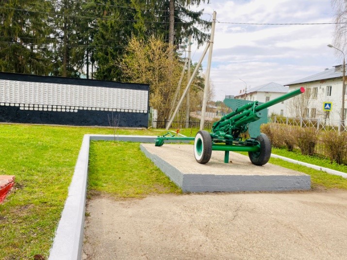 И хотя в годы войны здесь не было боев, в поселке очень сильны традиции памяти, а школьный музей боевой славы один из лучших в области. Пушку отреставрировали, покрасили, и теперь она стала неотъемлемой частью мемориального комплекса.