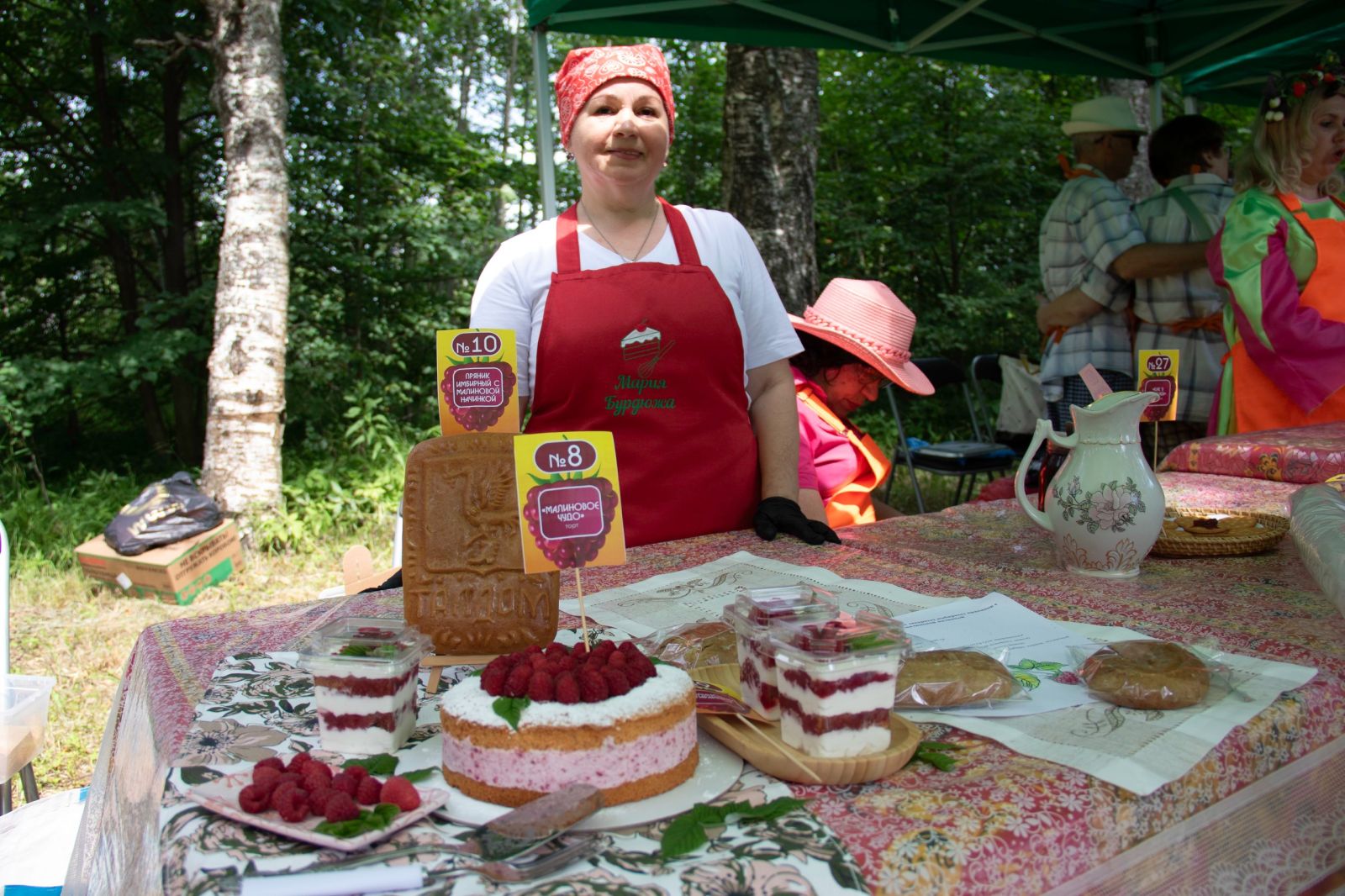 Гастрономический конкурс «Под вечер сбирая малину» стал одной из главных площадок праздника «Сенокос в Дубровках», который проходил в минувшую субботу на территории Дома-музея С.А.Клычкова. Конкурс назван в честь рождения поэта в малиннике, куда его мать под вечер пришла собирать малину. 17 участников представили 26 разных блюд с использованием малины (от выпечки до напитков). Порадовали и оформление, и вкус, и фантазия кулинаров. Победителями конкурса стали М.Бурдюжа (Г.Талдом), А.С.Тихонова (Вербилковский ДК), Д.Н.Шарова (Великодворский СДК), Никушина Т.Е. (Темповский СДК). Специальный приз жюри завоевала Г.Г.Мателис (Вербилковский ДК). Приз зрительских симпатий завоевала многократный победитель конкурса О.П.Кальянова ( специалист Талдомского социального центра)