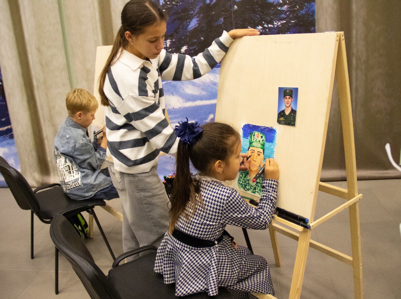 17 сентября в преддверии Дня отца, по инициативе Ассоциации ветеранов специальной военной операции Московской области и при поддержке Комитета по культуре и спорту Талдомского г.о. во Дворце культуры «Прогресс» прошел художественный мастер-класс «Мой папа - Герой!». Главными участниками стали дети из семей участников спецоперации. По фотографиям, с помощью наставников-педагогов и волонтеров-учащихся детских школ искусств, ребята создали портреты самых родных сердцу людей, своих героев-отцов. Дети смогли выразить свою любовь, гордость и благодарность своим папам через творчество, визуализируя их в своих рисунках.