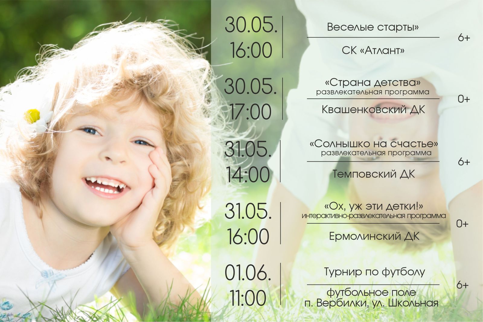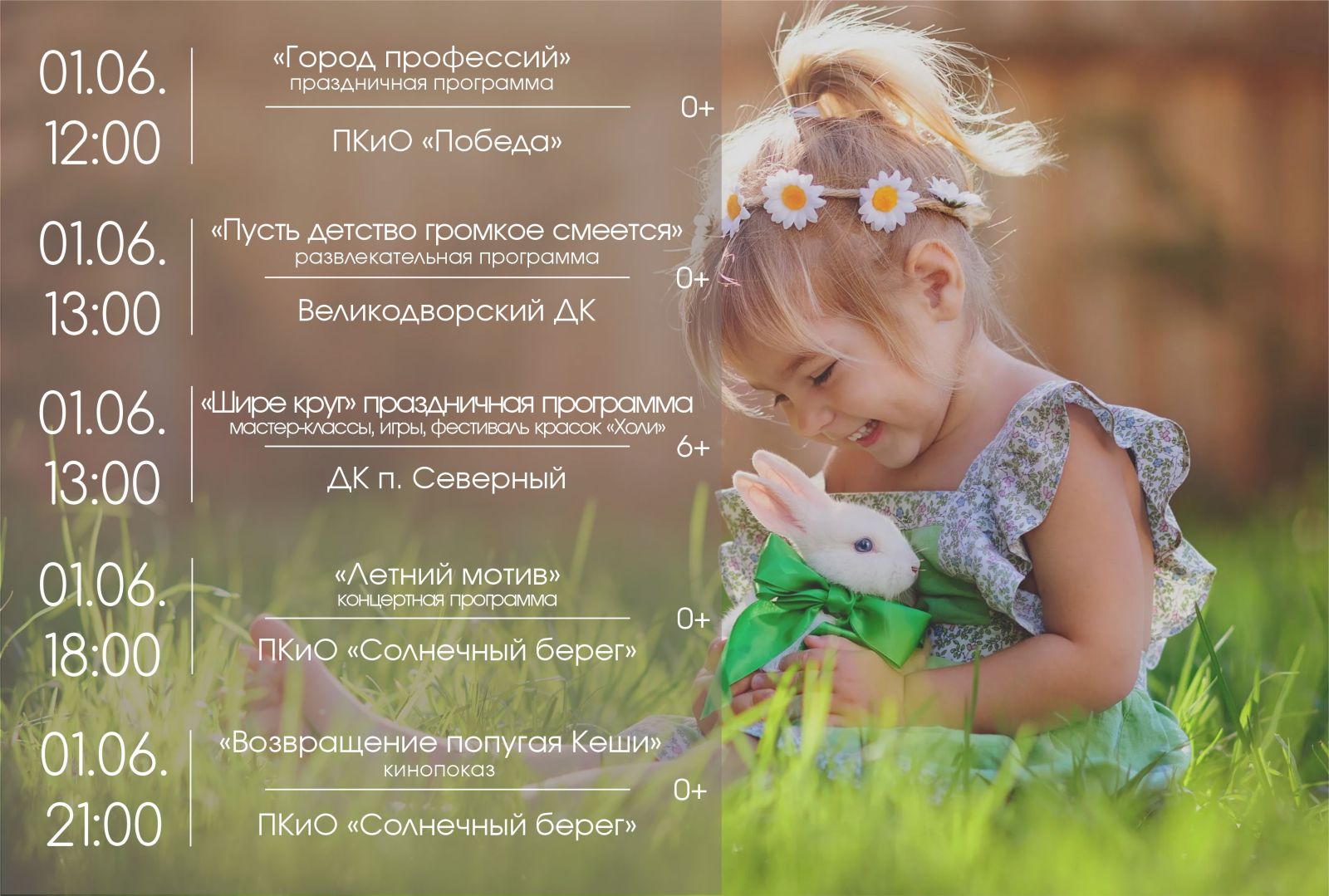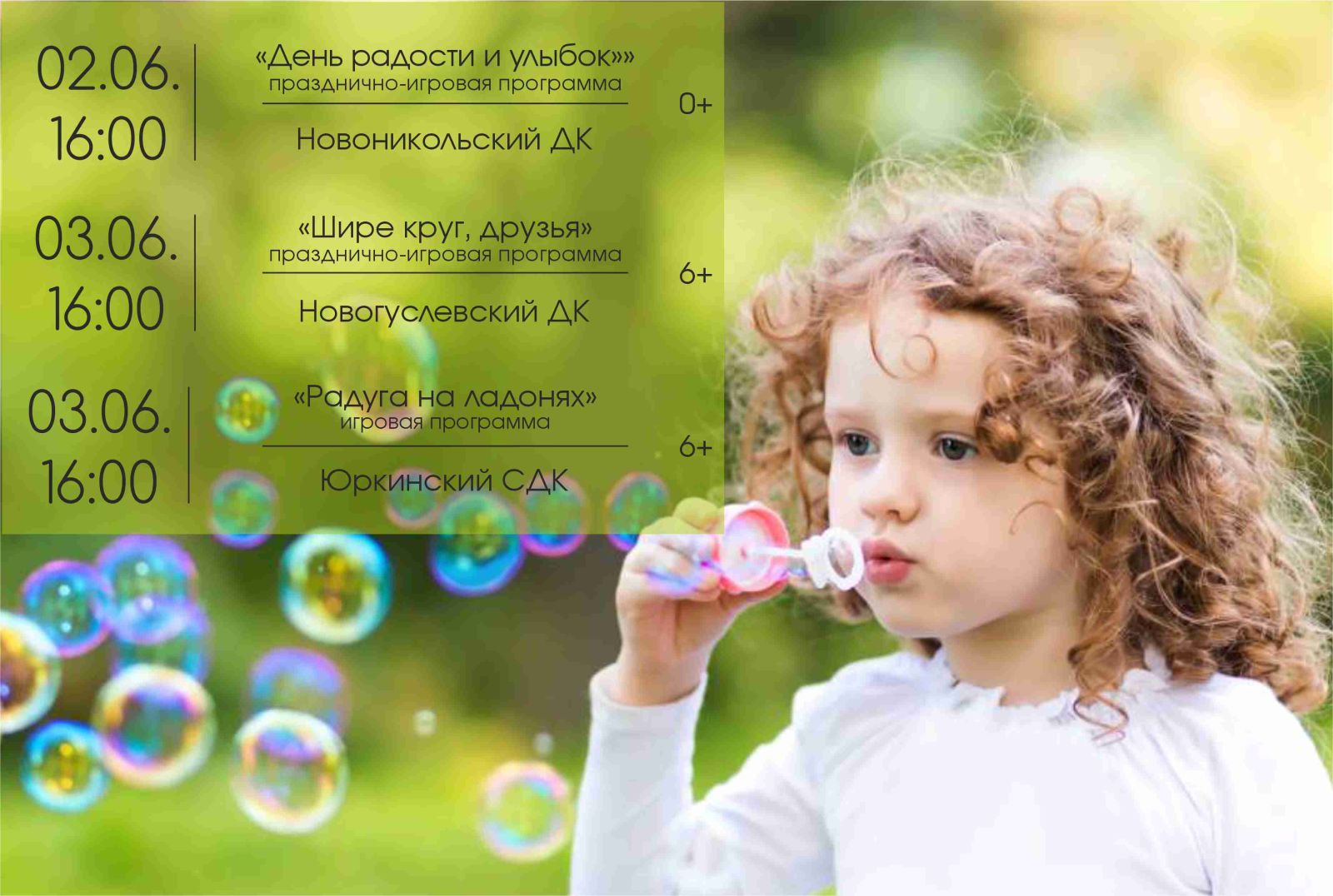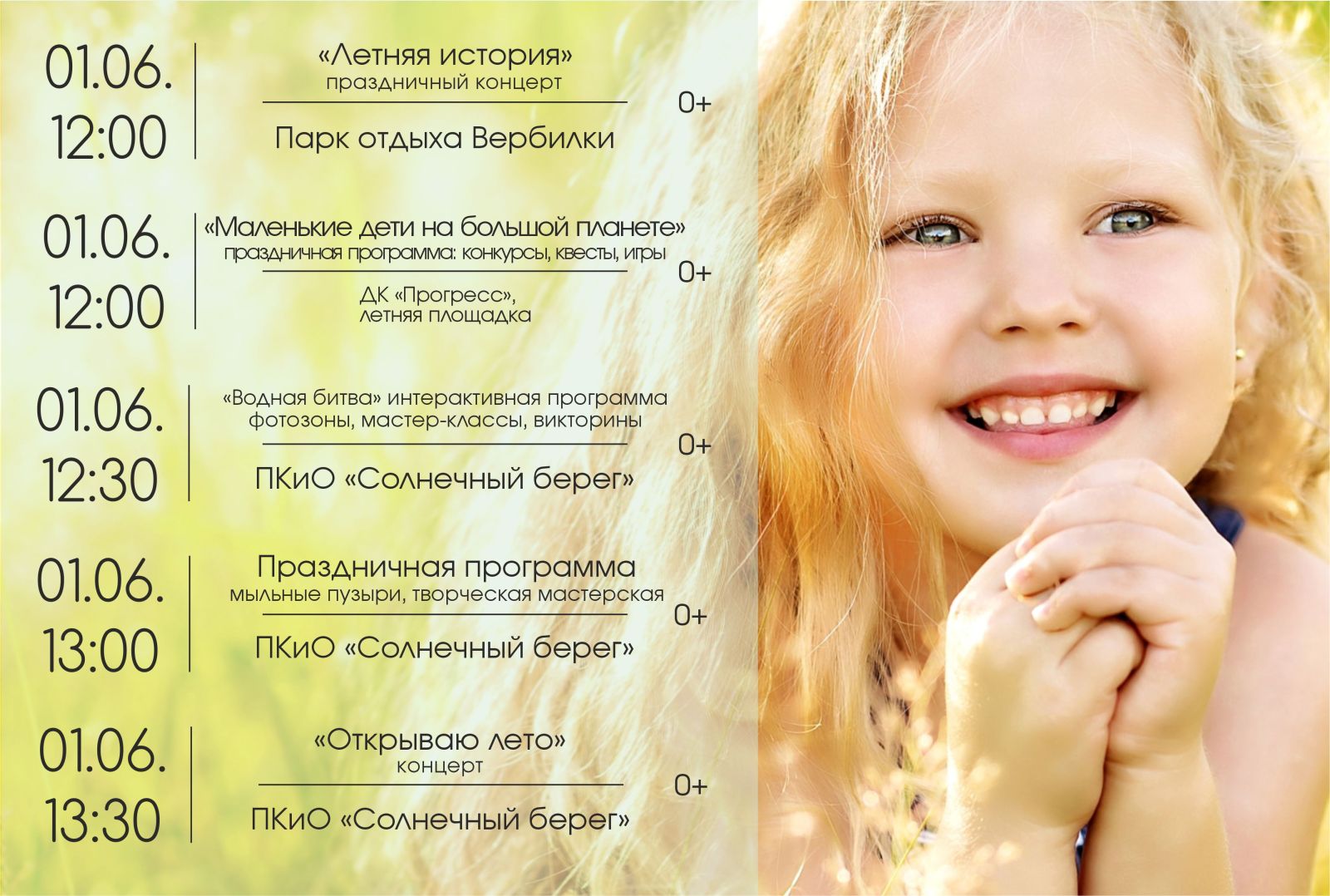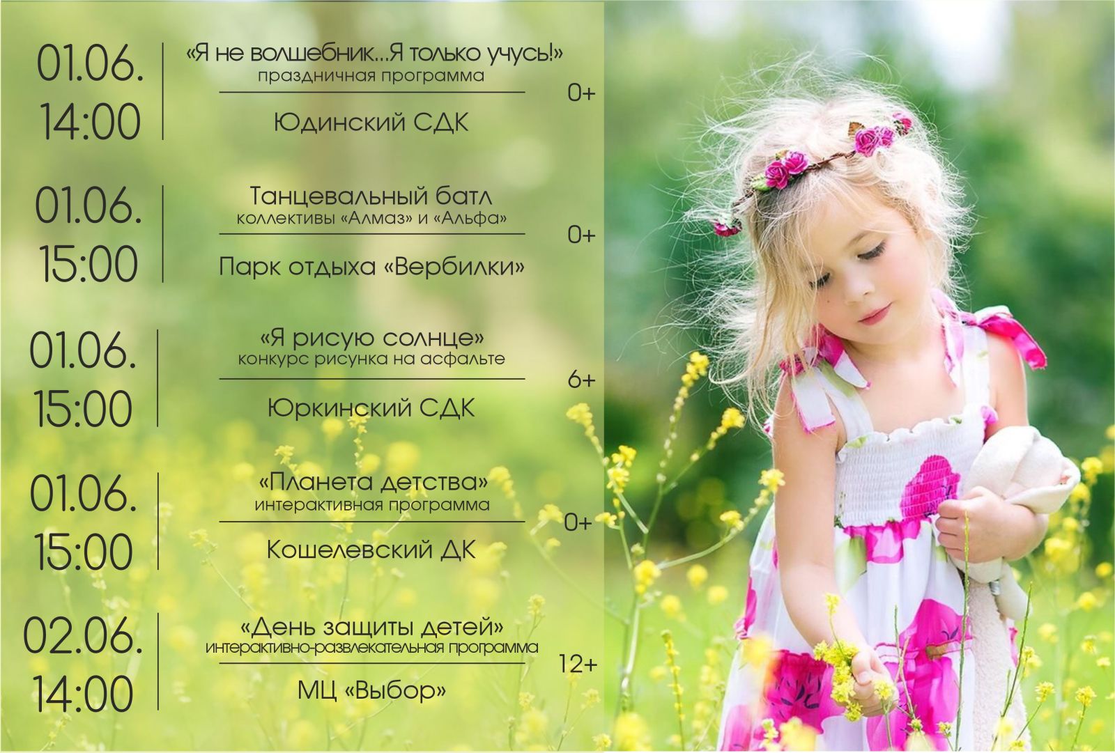 Детей ждут приятные сюрпризы и множество новых интересных занятий. Этот день обещает быть весёлым, задорным и праздничным! Не упустите возможность посетить эти мероприятия и насладиться первым днём долгожданного лета!