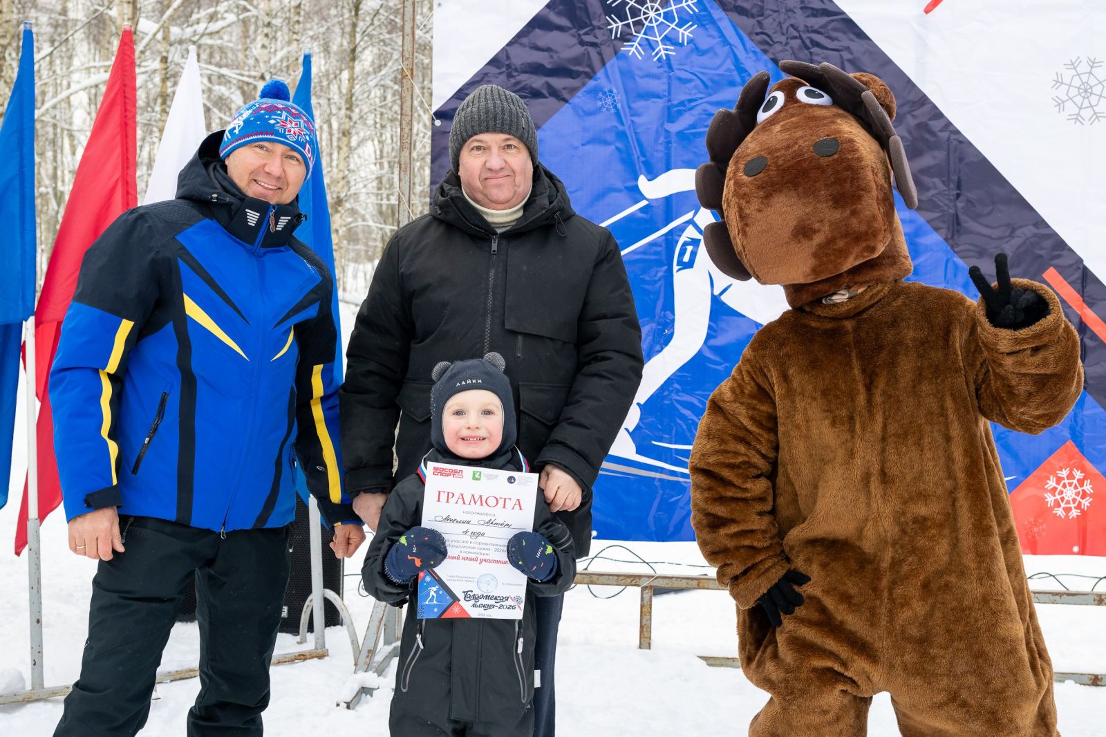 Право торжественного поднятия флага было предоставлено выпускникам спортивной школы «Дружба» отделения лыжных гонок, неоднократным победителям региональных и городских соревнований по лыжным гонкам Рябову Ростиславу и Тихомировой Марианне.
