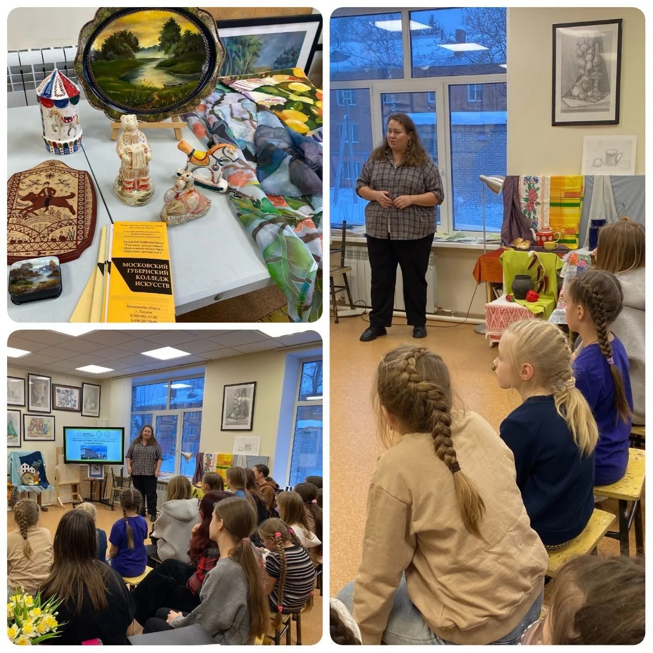 В феврале совместными усилиями были организованы две встречи педагогов и студентов колледжа с учащимися Центральной детской школы искусств в Запрудне и Вербилках. Ребята получили полное представление о возможностях продолжения образования в родном округе по направлениям художественное и народное искусство и дальнейшего развития своих способностей.